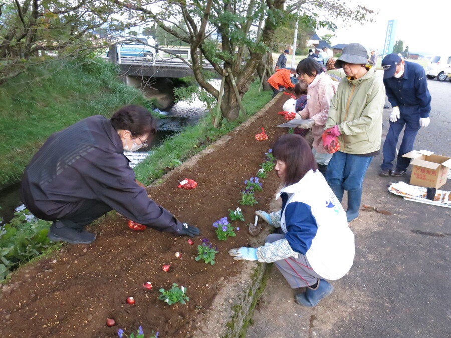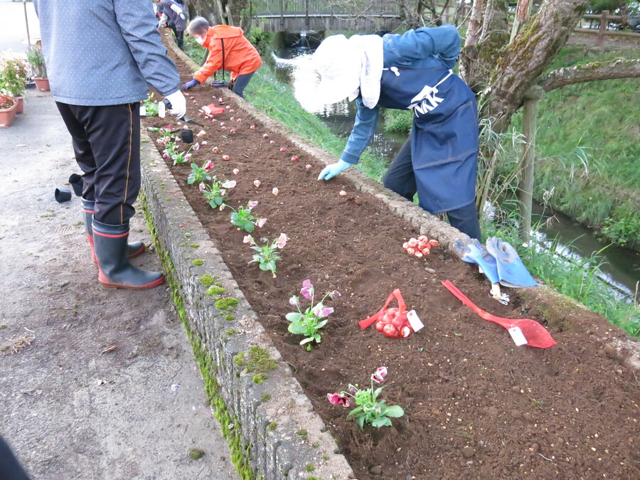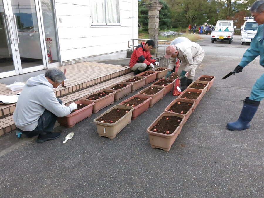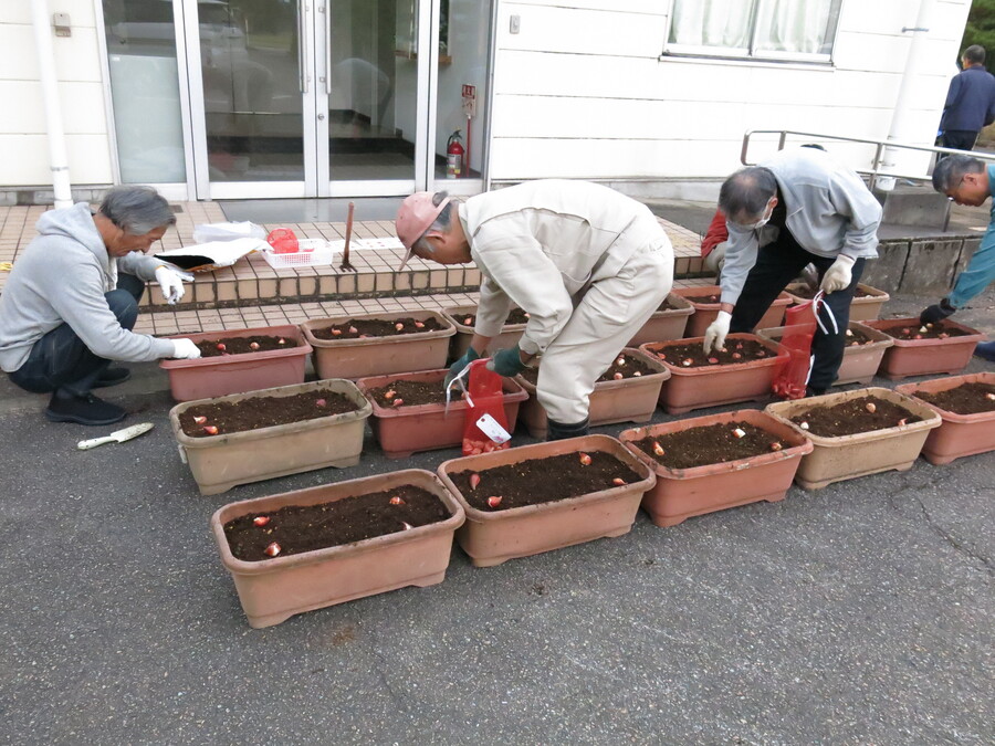 10月25日(土)朝6時から、福祉推進部会が中心となって運営委員や各ボランティアグループの皆さんと、プランターや花壇にチューリップ🌷の球根を植替えました。