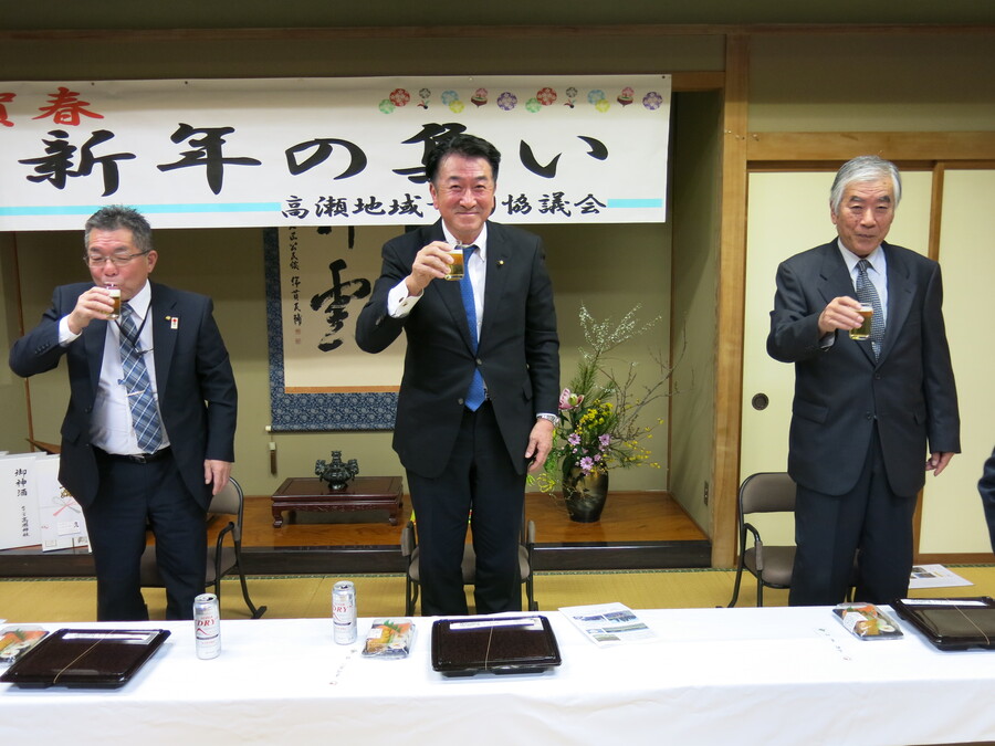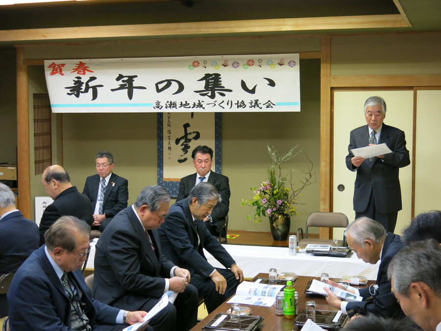 来賓として、南砺市議会議員才川昌一氏、同じく川原忠史氏のご臨席を頂き、高瀬地域づくり協議会の理事・運営委員をはじめ多数のご参加を頂き、和やかに年の初めを祝いました。