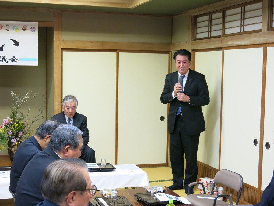 高野会長の年頭の挨拶に引き続き、才川市議会議員、川原市議会議員様にご祝辞を頂き、中川副会長の「乾杯」の発声で宴を開宴いたしました。